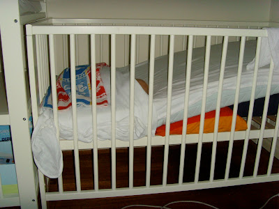 Since Maja is sick and have a bad cough we decided that I would sleep in her room with her. She have been sleeping in her own room for a couple of days and it works great. We have a spare bed in her room where i slept. We also put a pillow under her mattress so that she would come up and bit on a angel and hopefully this would help with her breathing and coughing. The night went well, she didn't cough at all or wake up. When i woke up at 7 i though i have a look at her and lifted my head, imagine my fears when i saw this, shit, i have never gotten out of my bed faster. I thought she would have been suffocated under the blankets. Luckily she had turned her head upwards so that she could get air.
